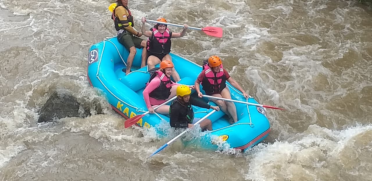 Frühmorgens schwingen wir uns wieder aufs Rad und fahren durch traditionelle Dörfer zum 43 Meter hohen Pinaras-Wasserfall. Weiter geht es zum glitzernden Linow-See. Schwefelhaltige Dämpfe steigen von seinen Ufern auf, und die Farben verändern sich aufgrund der chemischen Zusammensetzung häufig. Direkt weiter nach Timbuka für eine Raftingtour. Rückfahrt mit dem Auto nach Tomohon. Übernachtung im Hotel in Tomohon (Highland Resort).